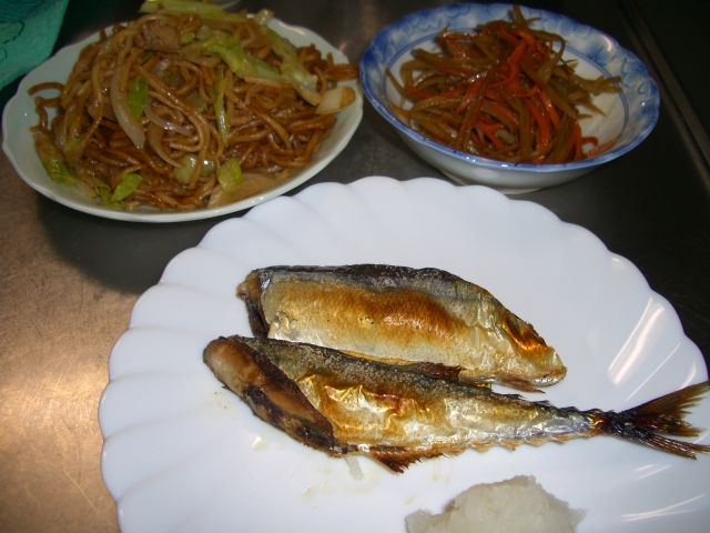 焼き魚とカレーって組み合わせもどうかと思ったけど、まぁいっか