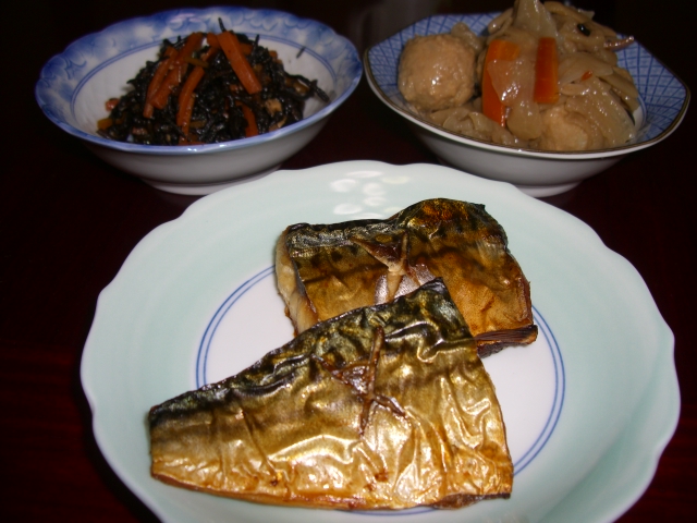 塩さばは小さかったので、ぱぱごんには2切れ。