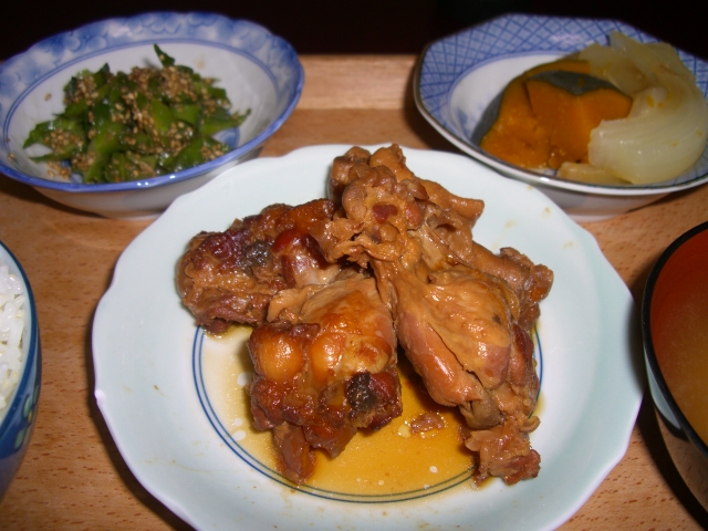 煮物は、手羽元の甘辛煮の煮汁で作りました。