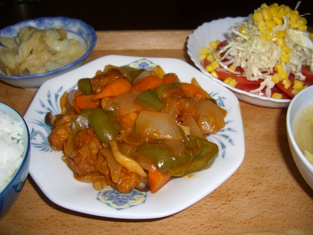 写真のご飯はぱぱごん用ですが、ぱぱごんには酢豚の量が