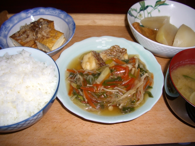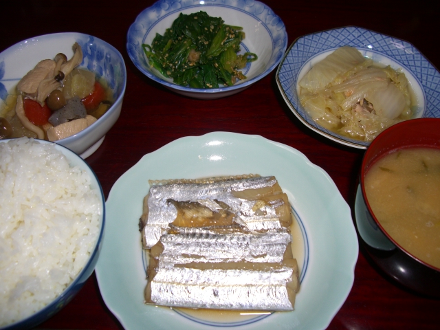 煮物(鶏肉~)は前日の残り物なので、煮物が2種類。
