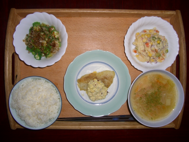 ポテトサラダは、昨日作っていたものにゆで卵を加えて再び登場。